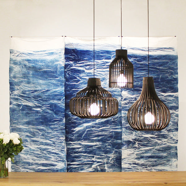 Attracted by a red bench in the shape of a feast of whale ribs, I entered Augustus Jones almost by a fractal accident on my way to Merchants. Walking through the chairs, armchairs and tables reminiscent of a French café, I was seized by an overwhelming feeling of peaceful softness emanating from long blue sheets of paper floating here and there through the open space of the white industrial walls.