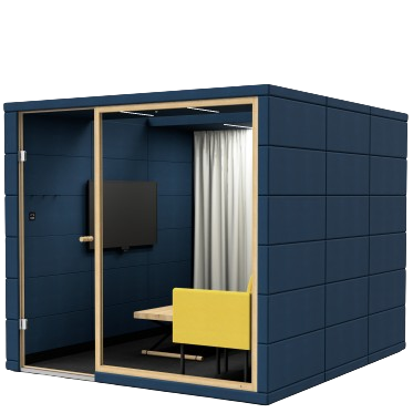 Bring the comfort of home into the office with REALM, your go-to spot for business meetings, casual chats with colleagues, rejuvenating breaks, or even a quick yoga session. This unconventional acoustic well-being meeting room offers it all. Enjoy peace and privacy while staying visually connected to your surroundings. The glass ceiling allows ample daylight to flood in, visually expanding the overall space of REALM. Furnished with a cozy sofa, table, and shelves as standard equipment, this meeting room will quickly become your favorite place in the office, making you look forward to each day at work.