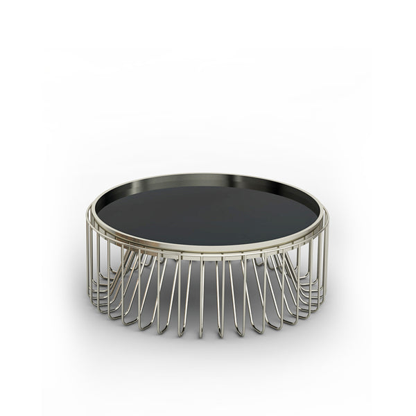Arketipo Design pushes its creativity even further with this side table and matching pedestal table, whose structure plays games with voids and solids. The unique base of metal wires describes not only the rounded contour of the table, but also a completely different form internally. Void interacts with solid, and the material dominates the void. This highly original structure supports a glass or marble top... the choice is yours.